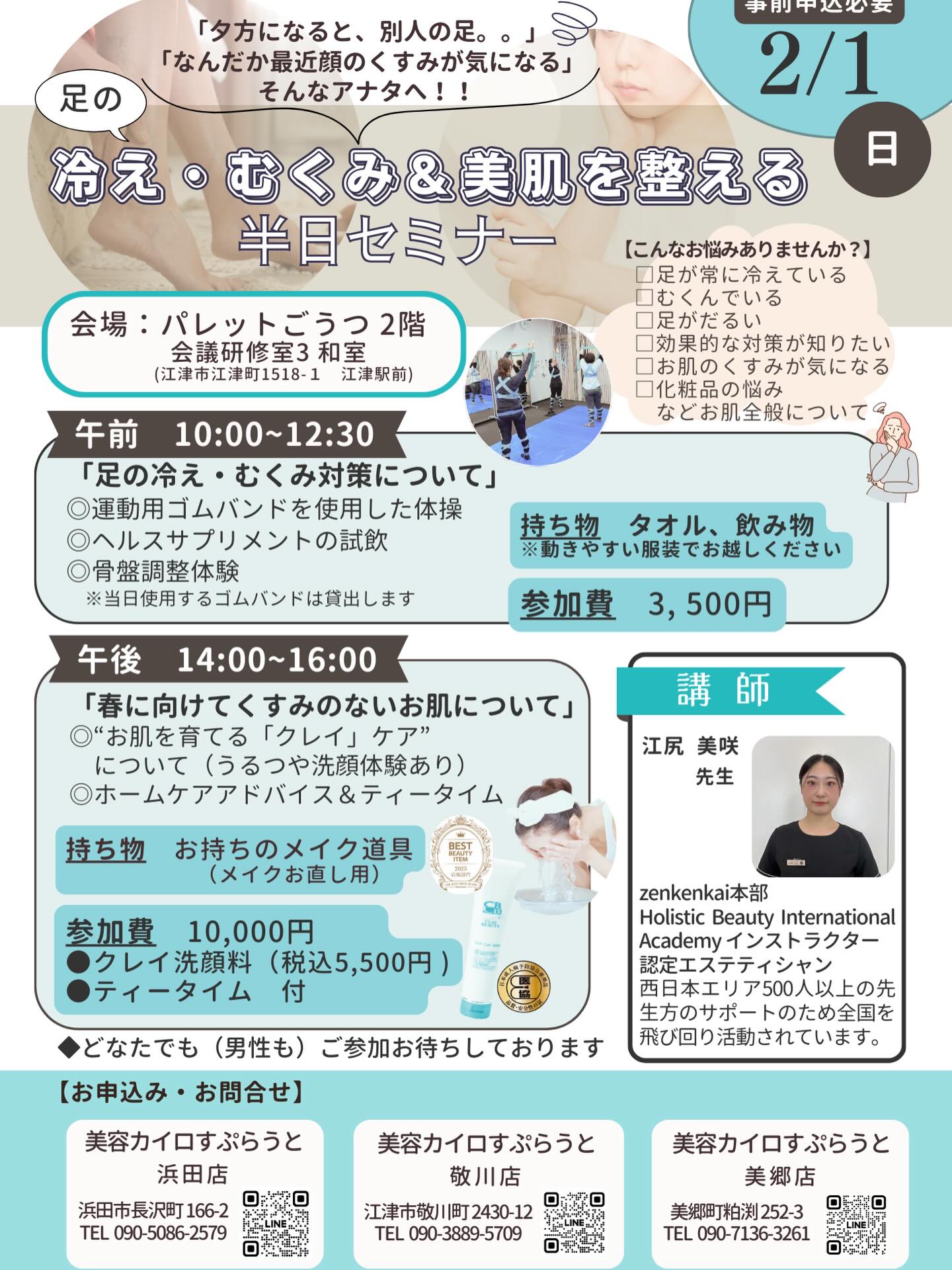 足の冷え・むくみ&美肌を整える 半日セミナー 令和8年2月1日 島根県江津市 パレットごうつにて